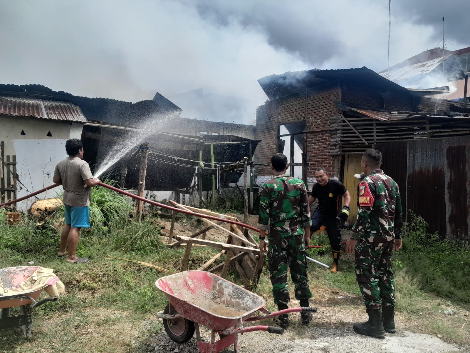 Kebakaran yang terjadi di Kel. Dembe I Kec. Kota Barat Kota Gorontalo pada hari ini sekitar pukul 12.30 Wita tersebut melanda rumah milik Bapak Umar Latif (57). Api dengan cepat membesar dan mengancam rumah-rumah di sekitarnya. Serda Khairul dan Kopda Sutrisno, yang saat itu sedang melaksanakan tugas pembinaan di wilayah binaannya, segera merespons kejadian tersebut.