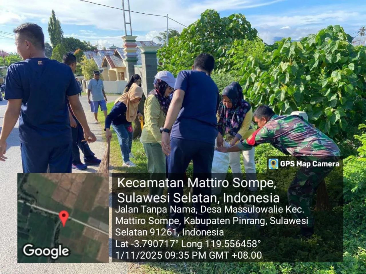 Pinrang_ Dalam upaya menjaga kebersihan lingkungan dan mempererat kemanunggalan TNI dengan rakyat, Babinsa jajaran Koramil 1404-02/Mattiro Sompe Kodim 1404/Pinrang melaksanakan kegiatan Karya Bakti bersama masyarakat di Dusun Sekkang, Desa Massulowalie, Kecamatan Mattiro Sompe, Kabupaten Pinrang, Selasa (04/11/2025).