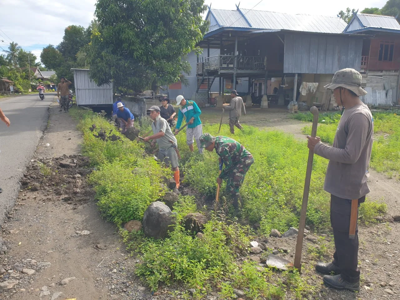 Pinrang_ Babinsa Koramil 1404-03/Mattiro Bulu Kodim 1404/Pinrang, Pelda Supyan menunjukkan kepeduliannya terhadap kebersihan dan kesehatan lingkungan dengan mengajak warga melaksanakan kegiatan kerja bakti pembersihan saluran air, bertempat di Lingkungan Pao, Kelurahan Padaidi, Kecamatan Mattiro Bulu, Kabupaten Pinrang, (9/2/2026).