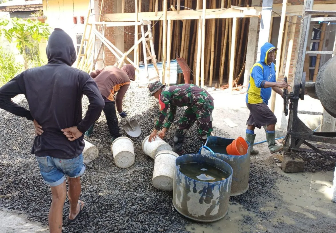 Pinrang_ Sebagai bentuk kepedulian serta upaya membangkitkan semangat gotong royong di tengah masyarakat, Babinsa Koramil 1404-04/Paleteang Kodim 1404/Pinrang Serda Abdul Rasyid melaksanakan kerja bakti bersama warga membantu proses pengecoran rumah milik salah satu warga di Lingkungan Sekkang Kelurahan Bentengnge Kecamatan Paleteang Kabupaten Pinrang, Kamis (29/01/2026).