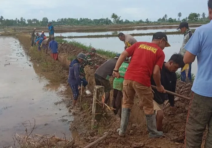 Pinrang_ Babinsa Koramil 1404-06/Duampanua Kodim 1404/Pinrang Koptu Mirdin Pratama melaksanakan kegiatan kerja bakti bersama warga dengan sasaran pembersihan dan perbaikan jalan tani di Desa Tanratuo, Kecamatan Cempa, Kabupaten Pinrang, Jum’at (09/01/2026).