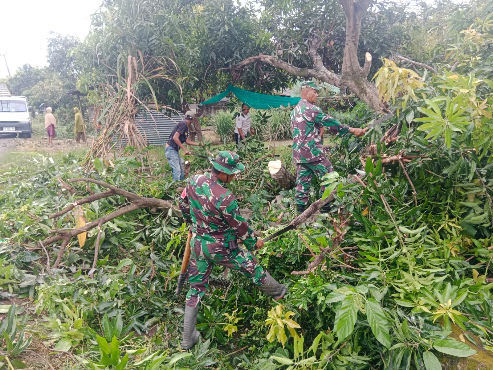 Kegiatan kerja bakti tersebut difokuskan pada pembersihan sisi jalan dari rumput liar dan sampah serta pemangkasan ranting pohon yang menjuntai ke badan jalan guna mencegah potensi bahaya bagi pengguna jalan.
