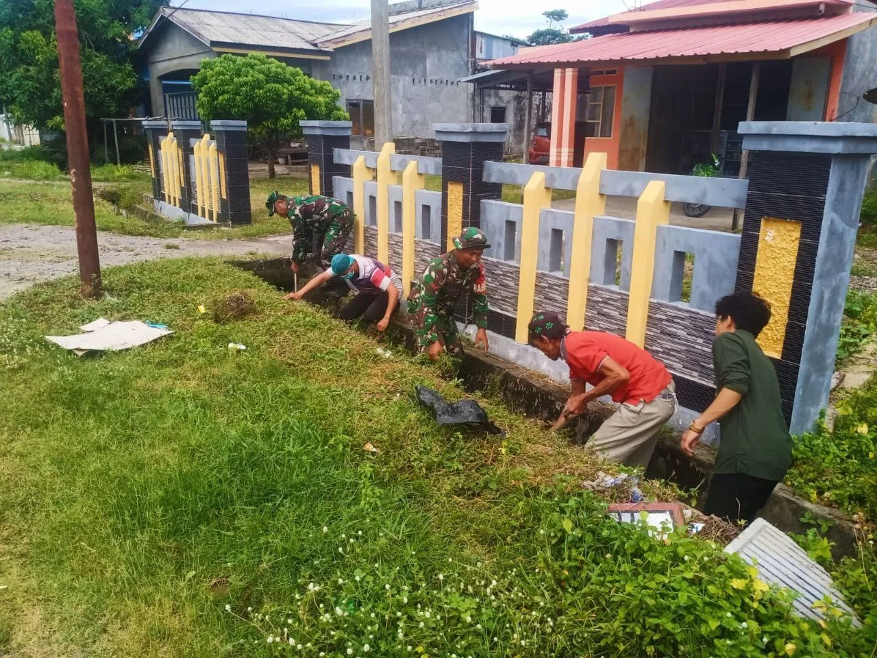 Kegiatan kerja bakti tersebut dilakukan sebagai upaya menjaga kebersihan lingkungan sekaligus mengantisipasi terjadinya genangan air saat memasuki musim penghujan. Babinsa bersama warga bahu-membahu membersihkan saluran air dari tumpukan sampah dan material lain yang menghambat kelancaran aliran air.