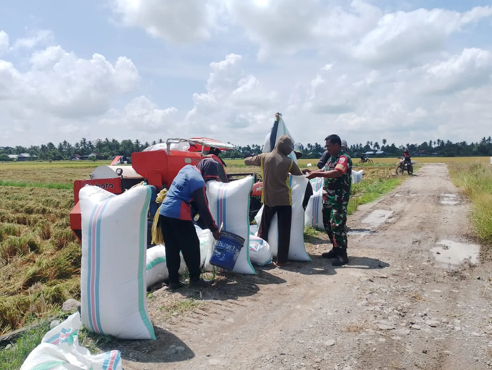 Dalam kesempatan tersebut, Babinsa menyampaikan bahwa keterlibatan TNI melalui para Babinsa merupakan bentuk kepedulian terhadap kesejahteraan petani sekaligus upaya memperkuat ketahanan pangan di daerah. Ia juga mengajak para petani untuk terus meningkatkan kualitas hasil pertanian serta menjaga kebersamaan dan gotong royong.