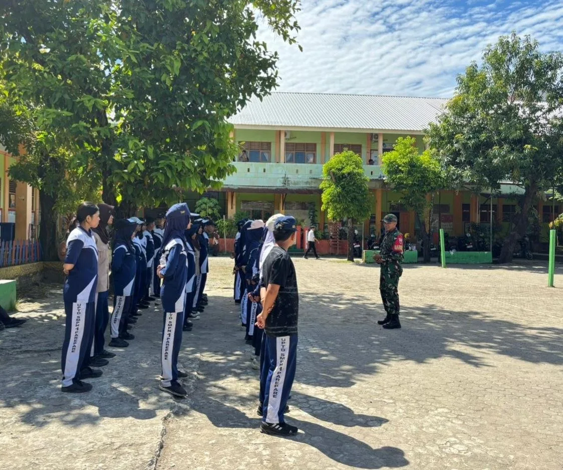 KODIM 1405/PAREPARE — Dalam rangka membentuk karakter disiplin dan jiwa nasionalisme generasi muda, Babinsa 1405-01/Ujung Kelurahan Mallusetasi, Sertu Muhammad Ali, melaksanakan kegiatan pembinaan kepada siswa(i) UPTD SMP Negeri 1 Parepare melalui pelatihan Peraturan Baris Berbaris (PBB), bertempat di lingkungan sekolah, Jl. Karaeng Burane, Kel. Mallusetasi, Kec. Ujung, Kota Parepare.