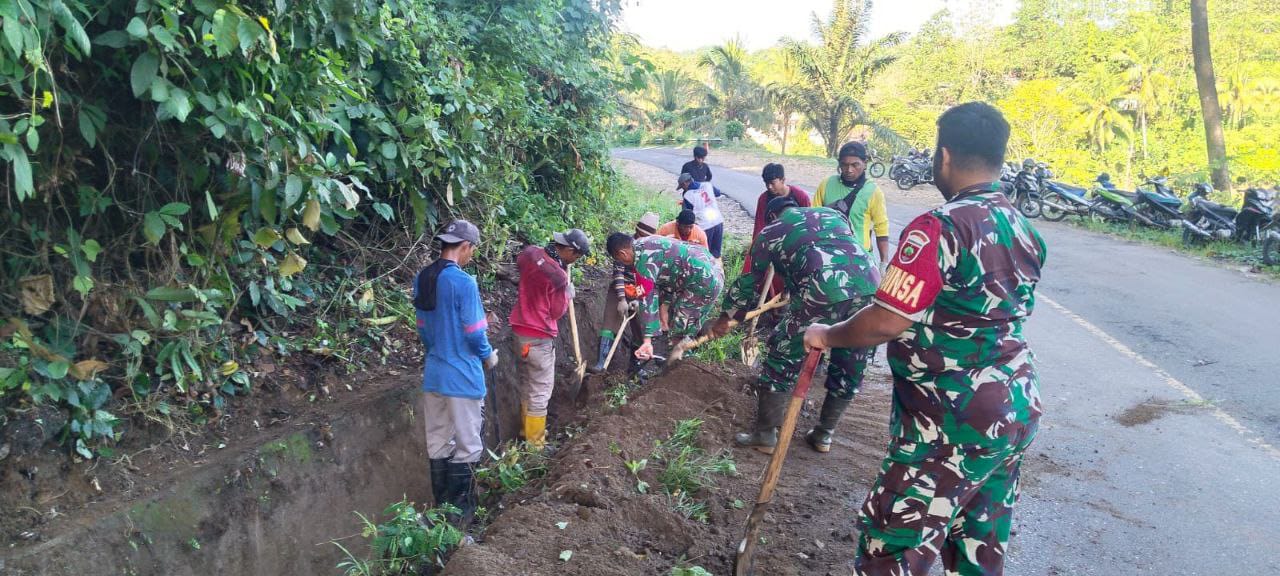 Enrekang – Babinsa Koramil 1419-02/Enrekang, melaksanakan karya bakti TNI bersama masyarakat membersihkan Drenase jalan bertempat di dusun pudukku, desa pundilemo, kecamatan cendana, Kabupaten Enrekang. Kamis (08/05/2025)