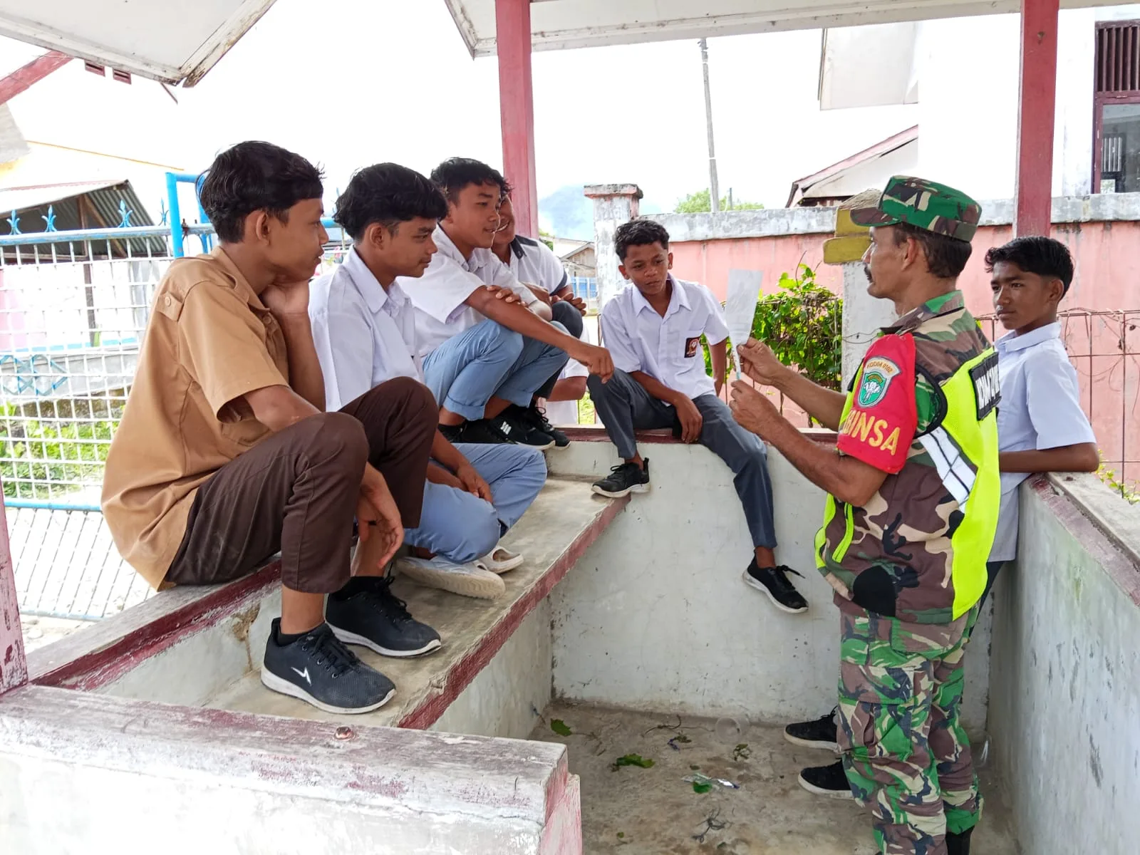 Pidie – Babinsa Koramil 17/Geumpang Kodim 0102/Pidie, Serma Abu Bakar, melaksanakan Komunikasi Sosial (Komsos) kreatif dengan para siswa SMA Negeri 1 Geumpang, Kecamatan Geumpang, Kabupaten Pidie. Rabu (09/2025).