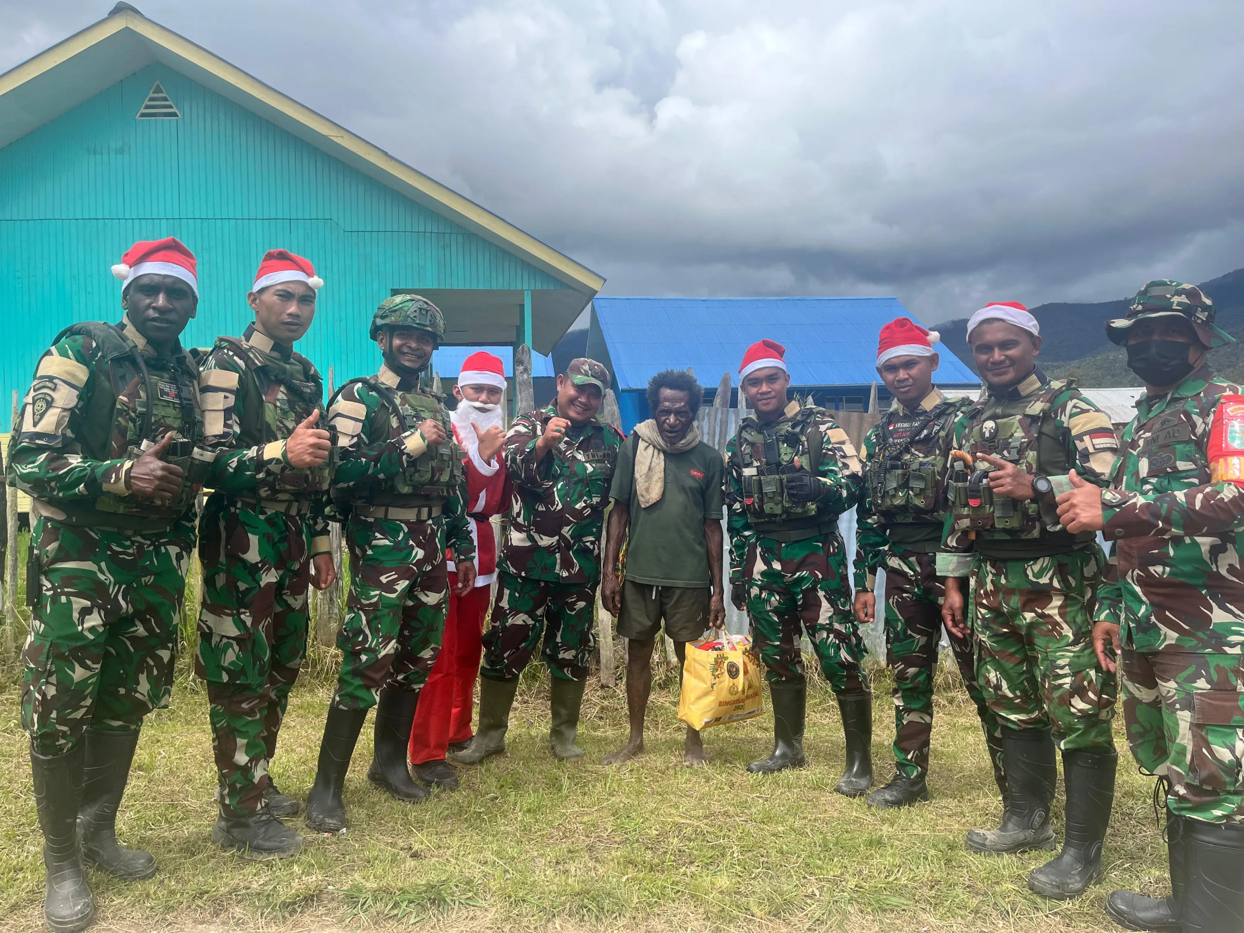 Obano – Babinsa Koramil 1703-03/Obano Serda Nazarudin Tambunan, bersama 3 orang rekan babinsa dan 10 orang Anggota Satgas Pamtas Yonif 711/Rks, melaksanakan kegiatan pembagian bingkisan natal berupa sembako kepada warga masyarakat di wilayah kampung binaan. Bertempat di Kampung Obano, Distrik Paniai Barat, Kabupaten Paniai, Prov. Papua Tengah. Selasa,(23/12/2025).