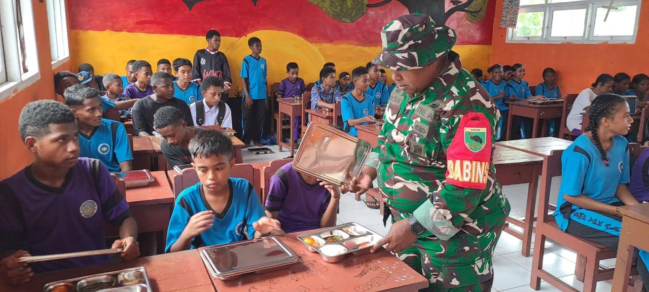 Babinsa Koramil 1805-01/Waisai Serka Ambrin dam menyampaikan pendistribusian dan pemberian makanan bergizi ini dilakukan oleh Badan Gizi Nasional (BGN)