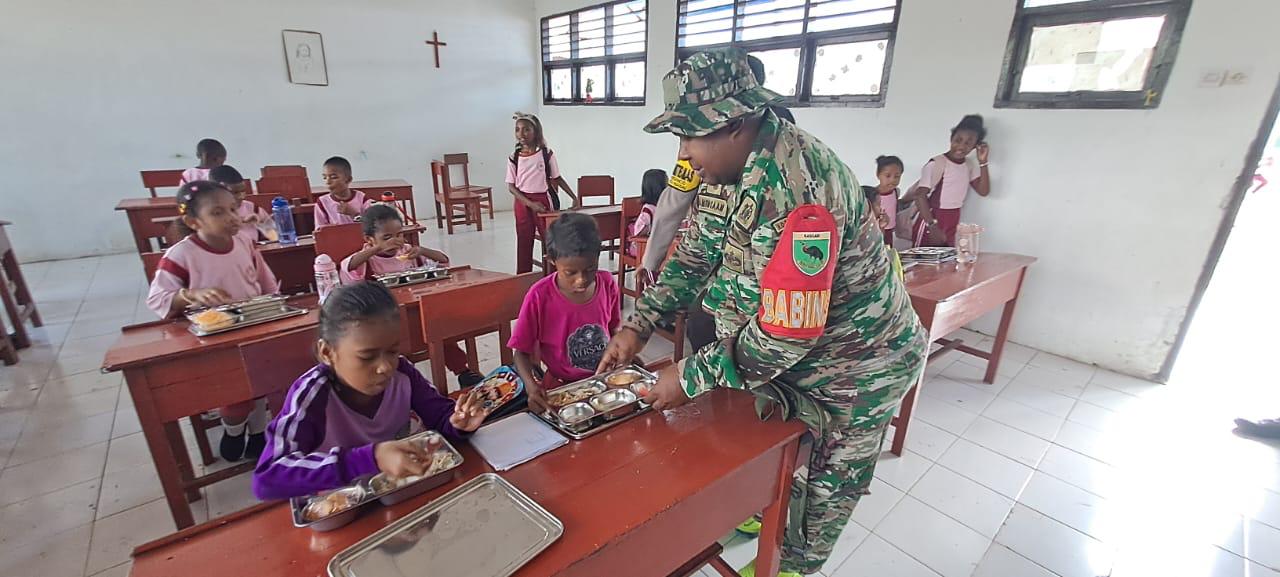 Babinsa Koramil 1805-01/Waisai Serka Ambrin dam menyampaikan pendistribusian dan pemberian makanan bergizi ini dilakukan oleh Badan Gizi Nasional (BGN)
