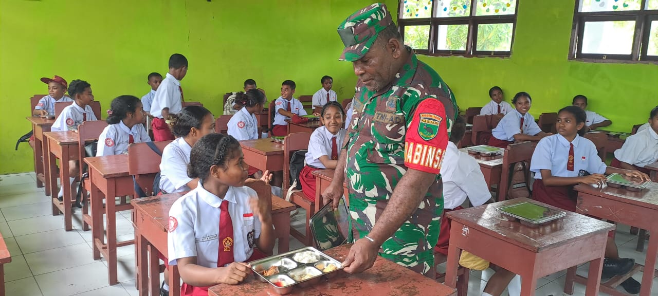 Babinsa Koramil 1805-01/Waisai Serma petrus Rumbiak menyampaikan pendistribusian dan pemberian makanan bergizi ini dilakukan oleh Badan Gizi Nasional (BGN)