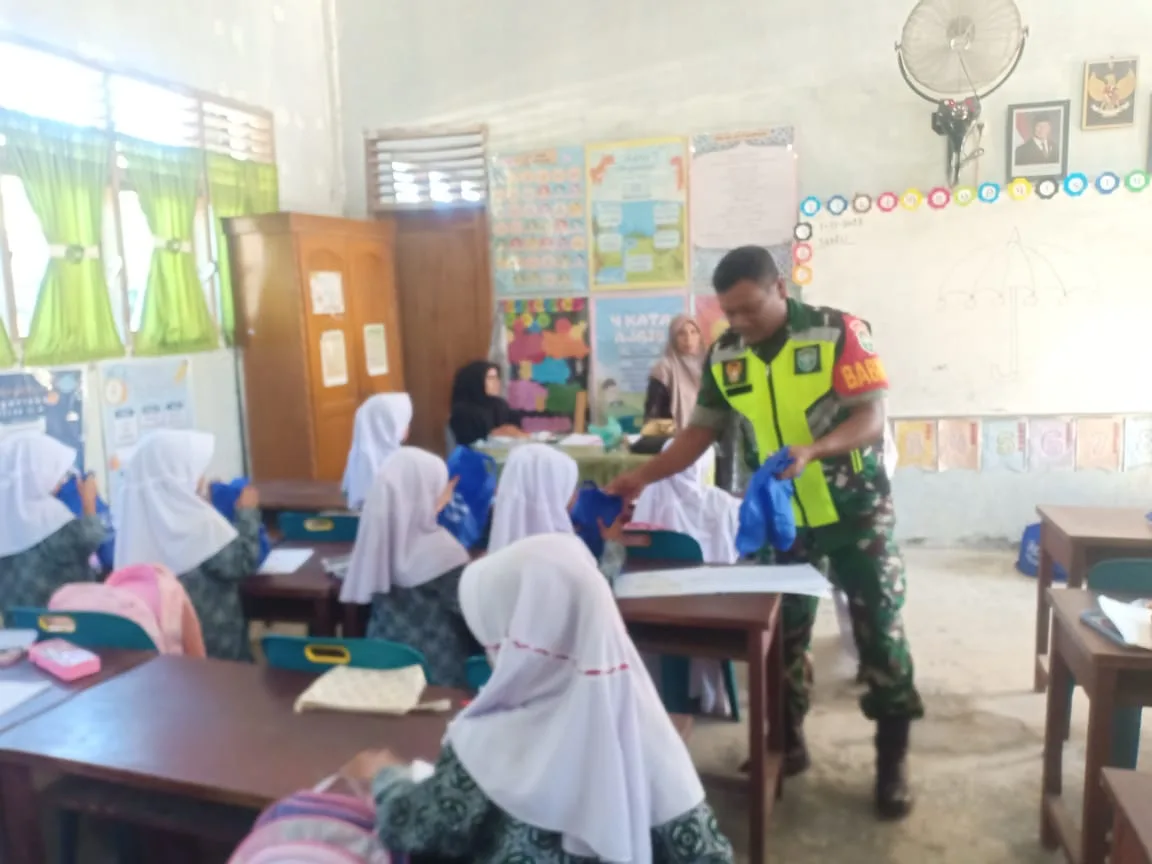 Babinsa Koramil 26/Grong-Grong Kodim 0102/Pidie, Sertu Miswarly, turut mengambil peran penting dengan melakukan pengawasan sekaligus membantu proses distribusi MBG kepada siswa-siswi MIN 11 Pidie di Kecamatan Grong-Grong, Kabupaten Pidie.