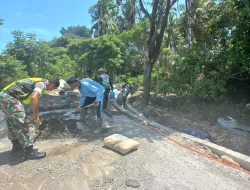 Di lapangan, Koptu Rudi Awaludin tampak aktif bekerja bersama warga, mulai dari mengangkat matrial, membersihkan sampah yang menyumbat aliran air, hingga membantu proses pembentukan saluran baru.