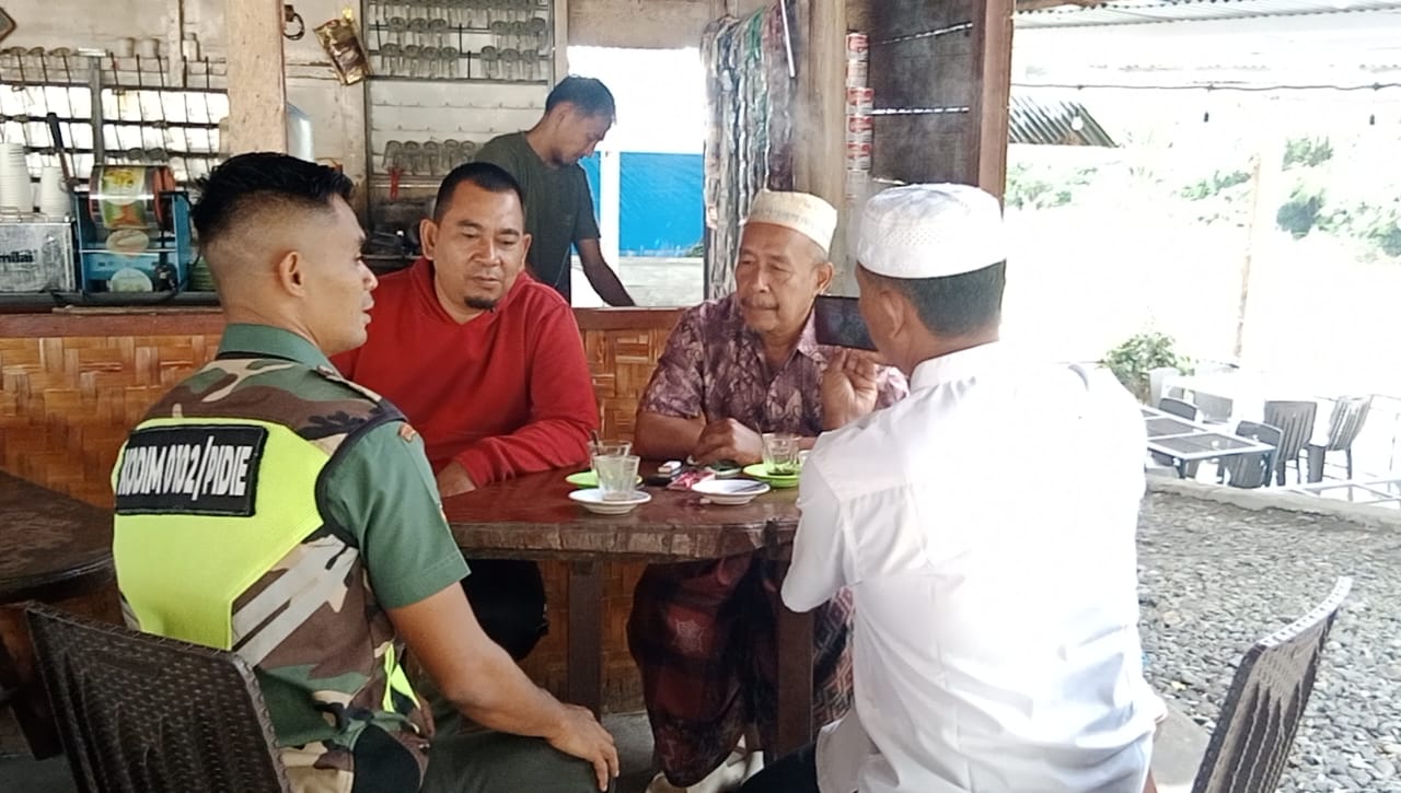 Pidie – Dalam rangka menyerap aspirasi dan memahami kondisi sosial ekonomi masyarakat, Babinsa Koramil 16/Tangse Kodim 0102/Pidie, Sertu Iswadi, melaksanakan kegiatan Komunikasi Sosial (Komsos) bersama warga di Desa Keude Tangse, Kecamatan Tangse, Kabupaten Pidie, Rabu (23/07/2025).