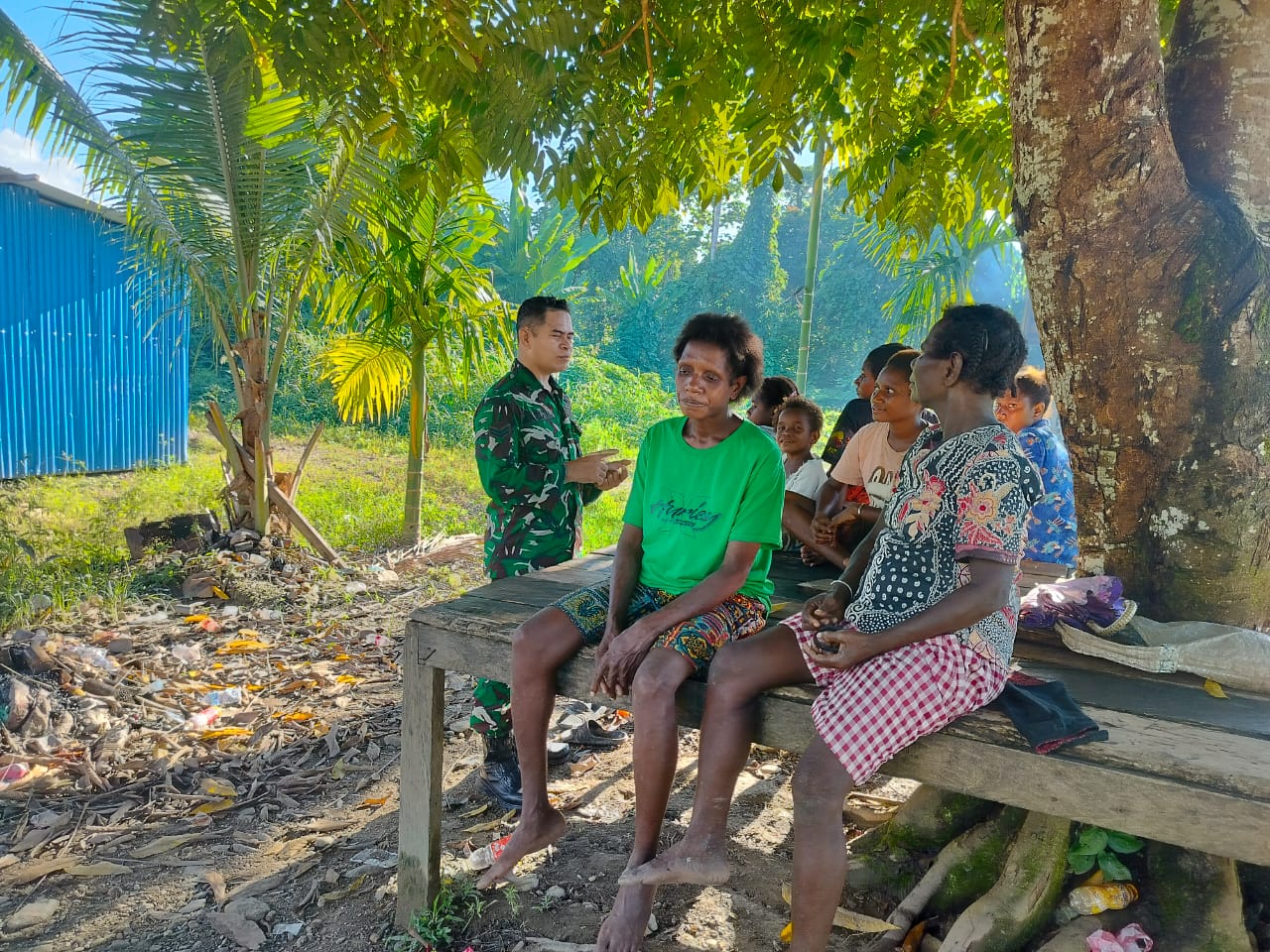 Kegiatan ini dilakukan sebagai bagian dari upaya mempererat hubungan antara TNI dan masyarakat. Bertempat di halaman rumah Ibu Yuliana Arumisore, tokoh masyarakat setempat, Babinsa menyampaikan pentingnya peran TNI dalam menjaga stabilitas keamanan melalui UU TNI.