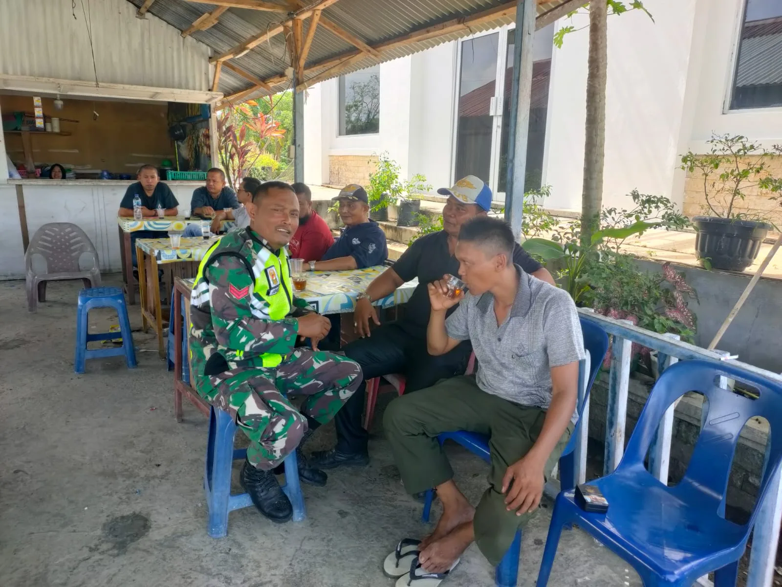 Babinsa Posramil Suka Makmue kodim 0116/ Nara koptu Dadang Sudrajat Sedang dalam menjalin rasa keakraban serta kebersamaan yang baik dengan warga Babinsa melaksanakan kegiatan rutin komsos di Desa kuta padang kecamatan Suka Makmue, kabupaten Nagan raya