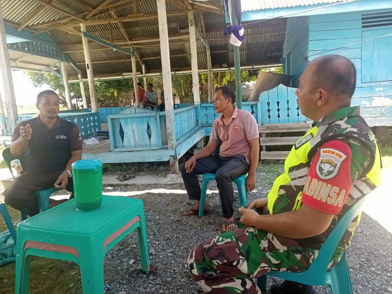 Babinsa Posramil Suka Makmue kodim 0116/ Nara Serda Dedi Sunardi Sedang dalam menjalin rasa keakraban serta kebersamaan yang baik dengan warga Babinsa melaksanakan kegiatan rutin komsos di Desa Lhok ramean kecamatan Suka Makmue, kabupaten Nagan raya