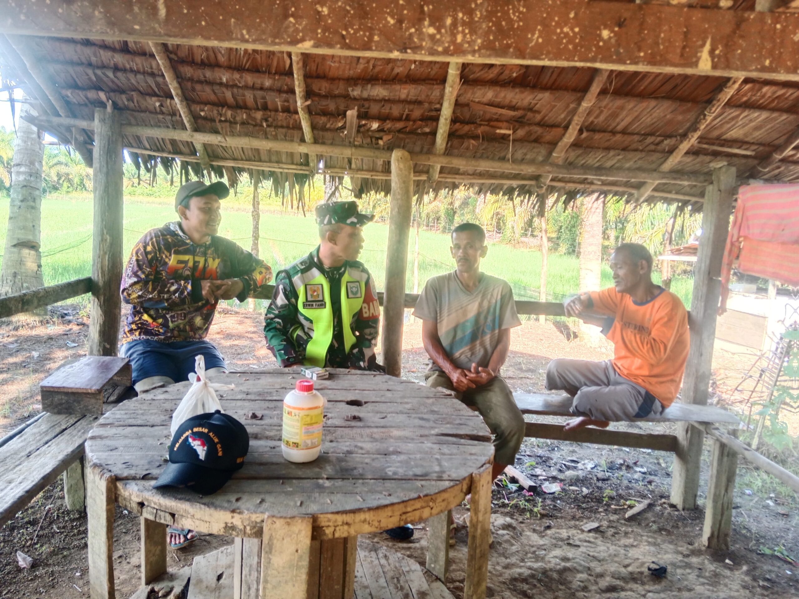 Serda Erwin Fahri Sebagai Babinsa Posramil Tadu Raya Yang Mendapat Tugas Melaksanakan Kegiatan Secara Langsung Ke Masyarakat Dengan Cara Komunikasi Sosial, Di Desa Binaan Yaitu Simpang Jaya Kec.Tadu Raya Kab. Nagan Raya