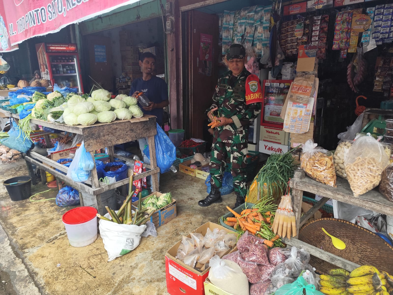 Babinsa Pantau Harga dan Ketersediaan Sembako di Pasar Pasca Lebaran