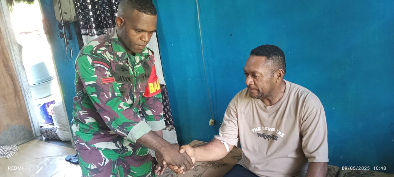 Babinsa Koramil 1811/01 Wasior, Pratu Riski Nadap Nunaki, menunjukkan komitmen kuat dalam memperkuat sinergitas antara TNI dan masyarakat dengan melaksanakan anjangsana di Kampung Tandia, Distrik Rasiei, Kabupaten Teluk Wondama, pada 9 Mei 2025.