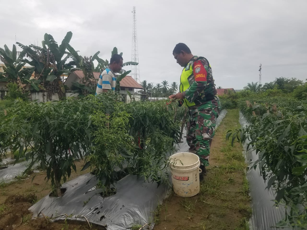Nagan Raya – Babinsa Posramil Beutong Ateuh Banggalang Kodim 0116/Nara Serka Wandi Suwito melaksanakan kegiatan pendampingan hanpangan memanen Cabe milik Bapak Talep dengan luas lahan 5 Rantai yang terletak di Desa Blang Meurandeh Kecamatan Beutong Ateuh Banggalang Kabupaten Nagan Raya, Senin (08/06/2025)