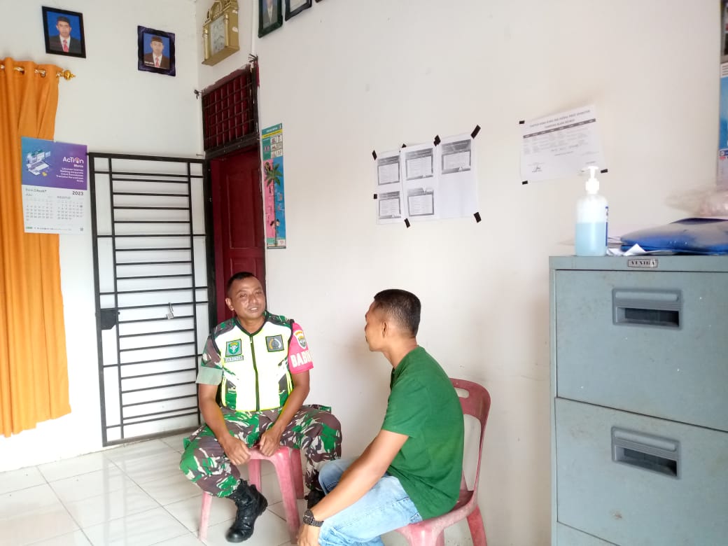 Nagan Raya – Babinsa Posramil Beutong Ateuh Banggalang Kodim 0116/Nara Serda Zulfadli melaksanakan Komunikasi Sosial (Komsos) bersama Kadus guna menjalin kemanunggalan TNI dengan rakyat, Komsos Babinsa dengan kepala dusun Mawar, bpk. Safari bertempat di Desa Kuta Teungoh Kecamatan Beutong Ateuh Banggalang Kabupaten Nagan Raya, Selasa (22/07/2025).