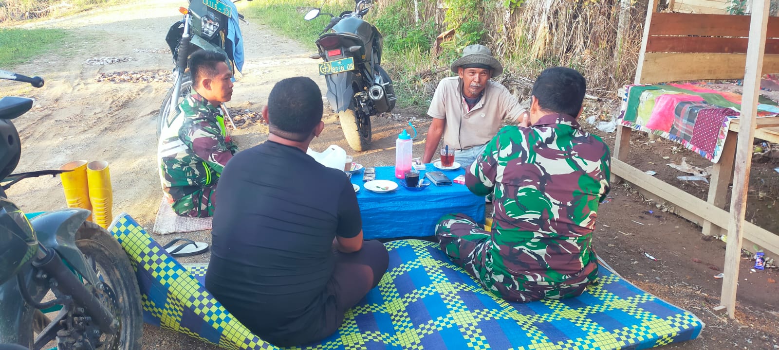 Nagan Raya – Sertu Gunawan Babinsa Posramil Beutong Ateuh Banggalang Kodim 0116/Nara melakukan Komunikasi Sosial (Komsos) dengan petani padi yang sedang beristirahat di desa Blang Meurandeh kecamatan Beutong Ateuh Banggalang Kabupaten Nagan Raya, Minggu (18/05/2025).