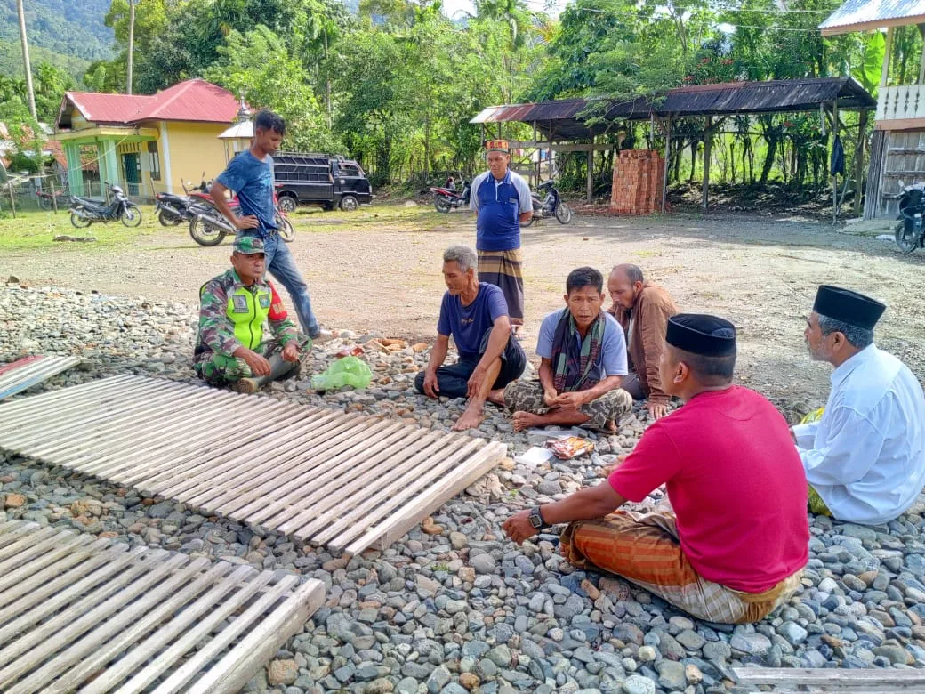 Nagan Raya – Babinsa Posramil Beutong Ateuh Banggalang Kodim 0116/Nara Serda Muhazir Pamuji melakukan Komunikasi Sosial (Komsos) dengan tokoh agama di wilayah binaan.
