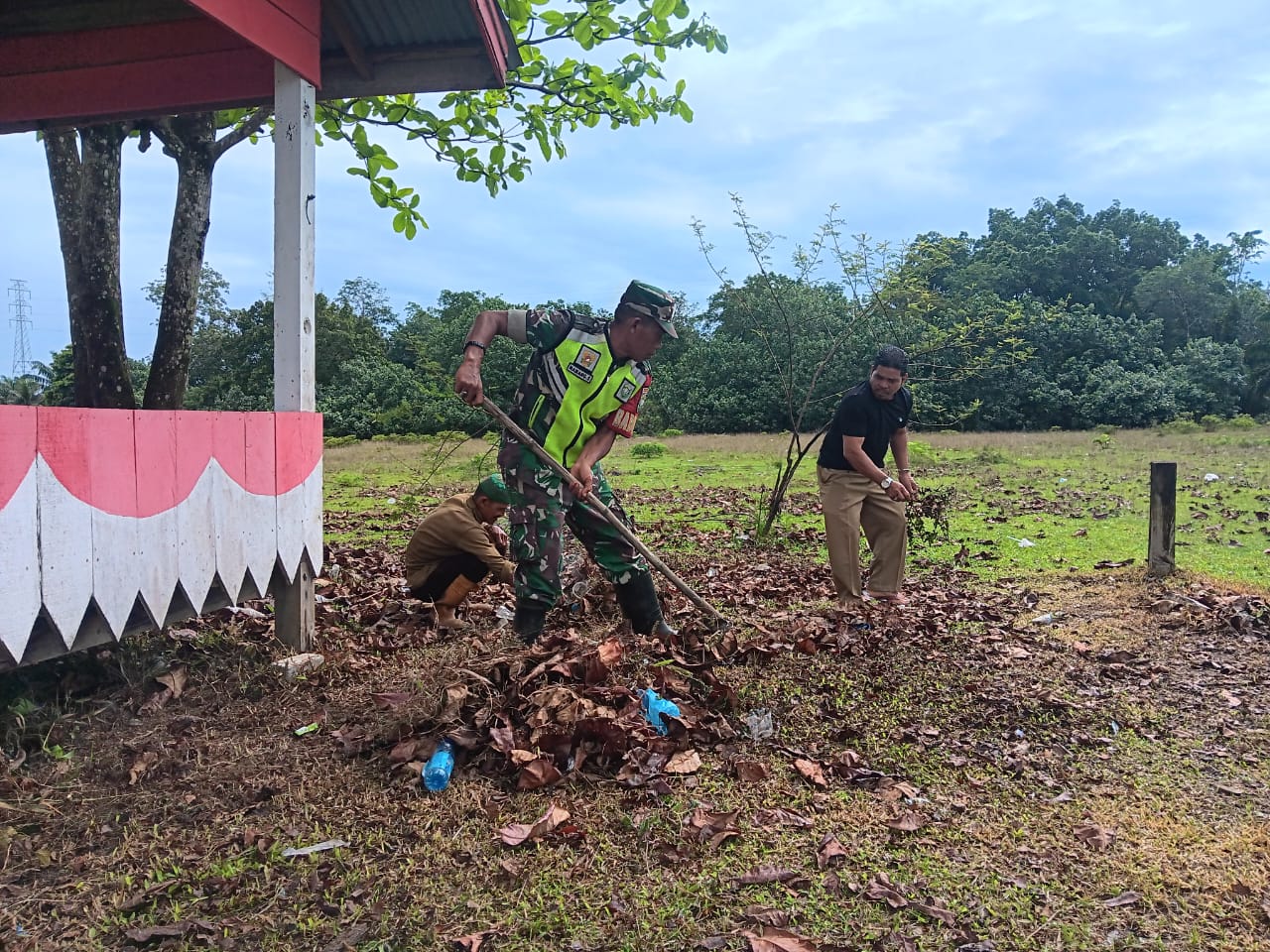 Nagan Raya – Sertu Nanang Rusdianto Posramil Kuala Pesisir melaksanakan gotong royong bersama warga dalam rangka Jelang HUT TNI ke 80 dengan pembersian pos kamling di Desa Suak Puntong Kec. Kuala Pesisir Kab. Nagan Raya, Senin (15/09/2025).