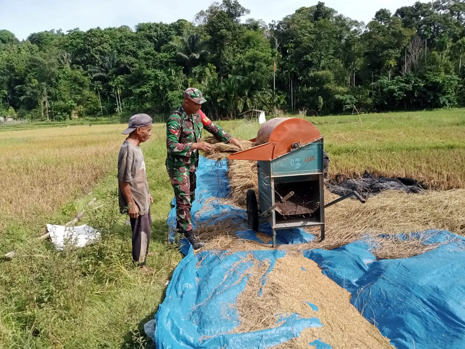 Koptu Rison menuturkan kegiatan ini merupakan bentuk kemanunggalan TNI bersama rakyat demi mewujudkan swasembada pangan nasional Babinsa turun ke lapangan membantu petani untuk mengangkut hasil panen padi untuk di jemur.