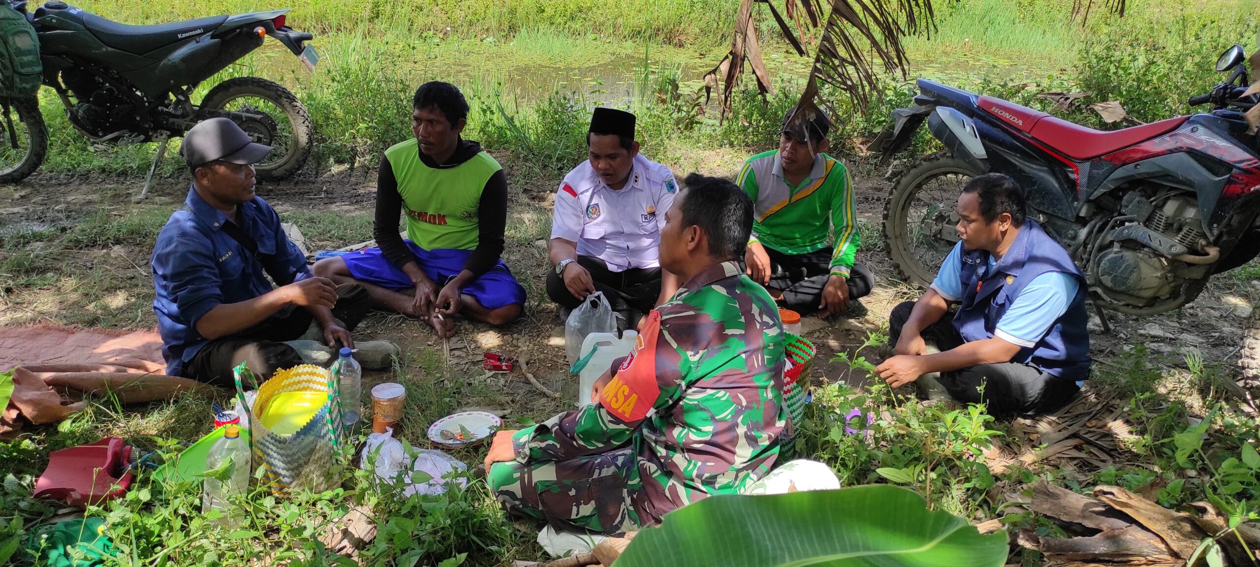 Aparat Desa beserta Babinsa tidak hanya melaksanakan koordinasi terkait kendala yang diterima oleh para Petani, namun juga mengecek secara langsung di Lapangan apa kendala-kendala tersebut.