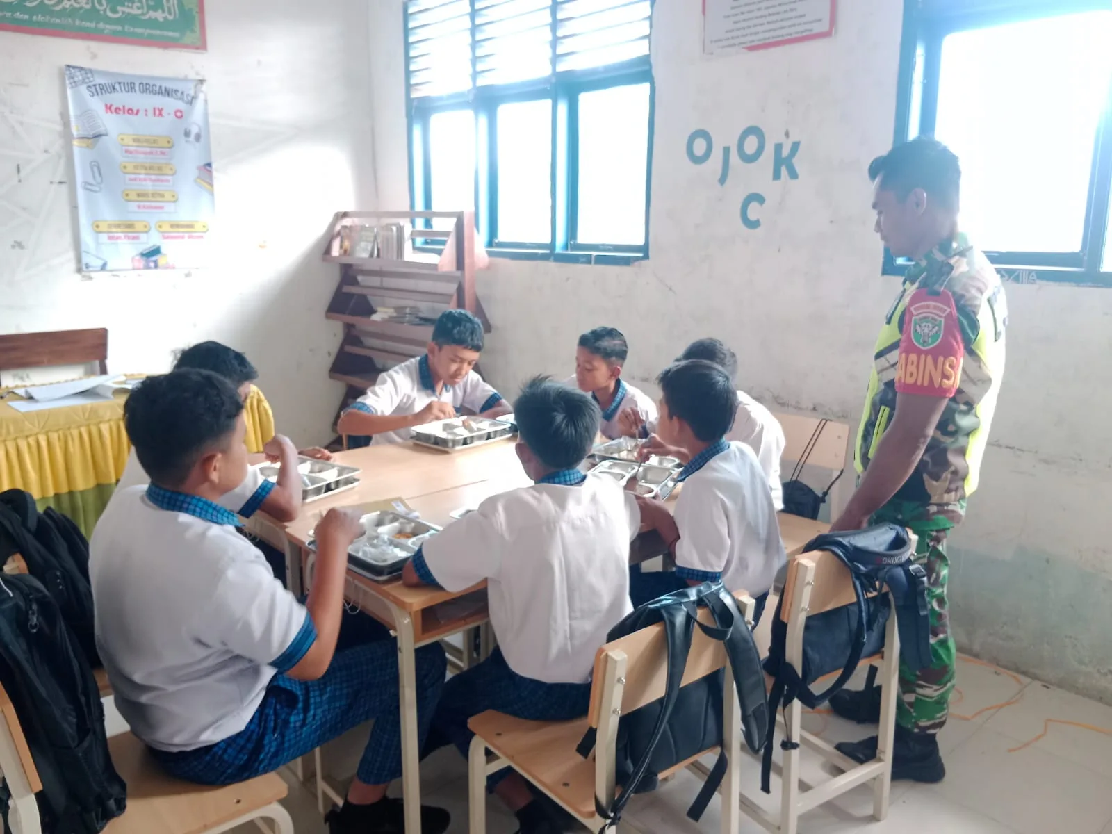 Kehadiran aparat TNI di lokasi bukan sekadar simbol pengawasan, tetapi juga bagian dari dukungan konkret terhadap program strategis pemerintah dalam meningkatkan kualitas gizi generasi muda. Sertu Iswadi terlihat berinteraksi dengan pihak sekolah serta memantau langsung proses distribusi makanan kepada siswa.