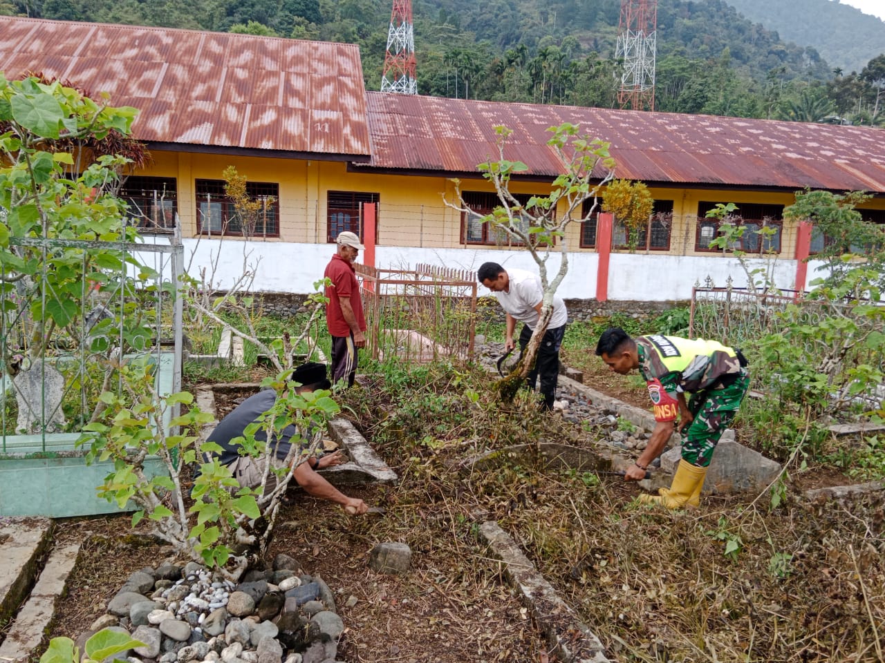 Pidie, – Suasana kebersamaan dan kepedulian lingkungan tampak di Desa Keude Tangse, Kecamatan Tangse, Kabupaten Pidie, saat Babinsa Koramil 16/Tangse Kodim 0102/Pidie, Sertu Iswadi, memimpin kegiatan gotong royong pembersihan Tempat Pemakaman Umum (TPU), Jumat (08/08/2025).