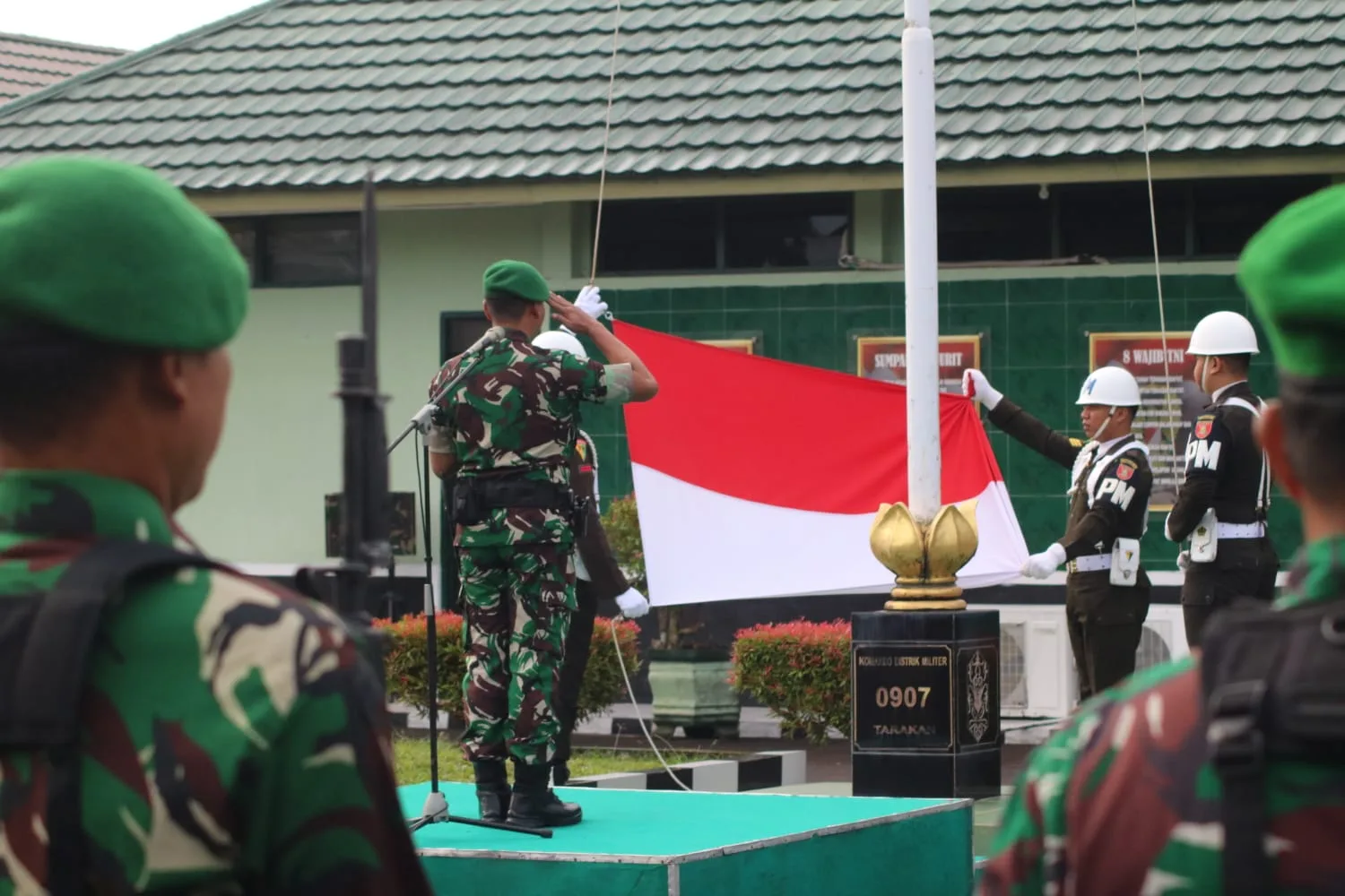 Bertindak sebagai Inspektur Upacara Dandim 0907/Trk Letkol Inf Syaiful Arif S.Sos.,M.Han. sementara Kapten Inf Suwito (Pjs Pasi Intel Dim 0907) dipercaya sebagai Komandan Upacara dan Kapten Inf H.R.Sirait (Pjs Pasi Pers Dim 0907) sebagai Perwira Upacara.