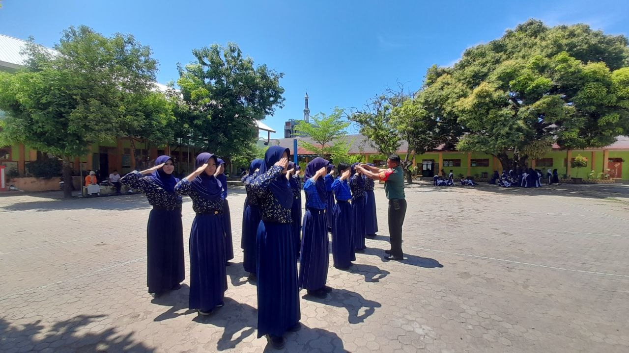 KODIM 1405/PAREPARE – Selain Tugas Pembinaan Desa, Anggota Koramil 1405-01/Ujung Serda Muhammad Ali, juga melaksanakan kegiatan Pembinaan Ketahanan wilayah (Bintahwil) dengan cara memberikan Pelajaran Peraturan Baris Berbaris (PBB), pada Siswa/Siswi UPTD SMP Negeri 1 Parepare, Jl. Karaeng Burane Kelurahan Mallusetasi, Kecamatan Ujung, Kota Parepare. Rabu (04/06/2025)