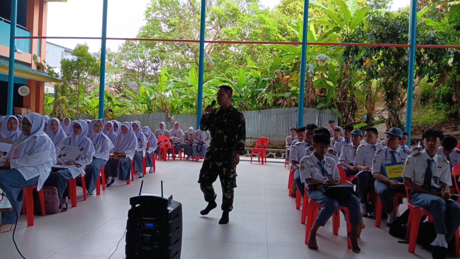 Tarakan – Guna membentuk karakter diMasa Pengenalan Lingkungan Sekolah (MPLS) bagi siswa – siswi baru di lingkungan SMA Ulul Albab Serda Samril Prajurit Kodim 0907/Trk memberikan pembekalan materi Wawasan kebangsaan dan bela negara,Selasa(08/07/2025).