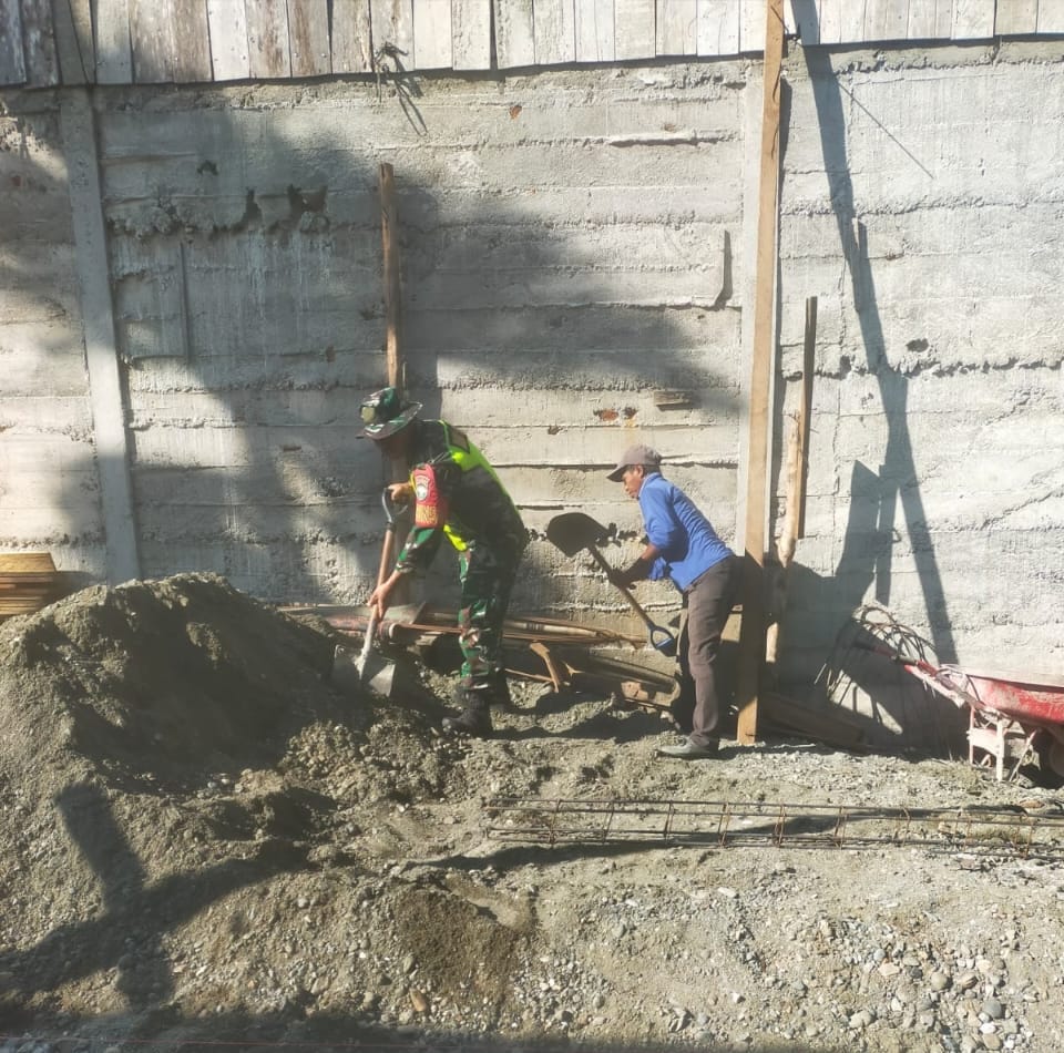 Nagan Raya – Babinsa Koramil 02/Seunagan, Kodim 0116/Nagan Raya,Serda Mahrijal bantu ringankan beban warga dalam rangka pembangunan rumah warga yang bertempat di Desa Krueng Mangkom Kecamatan Seunagan Kabupaten Nagan Raya ,Senin (01/09/2025).