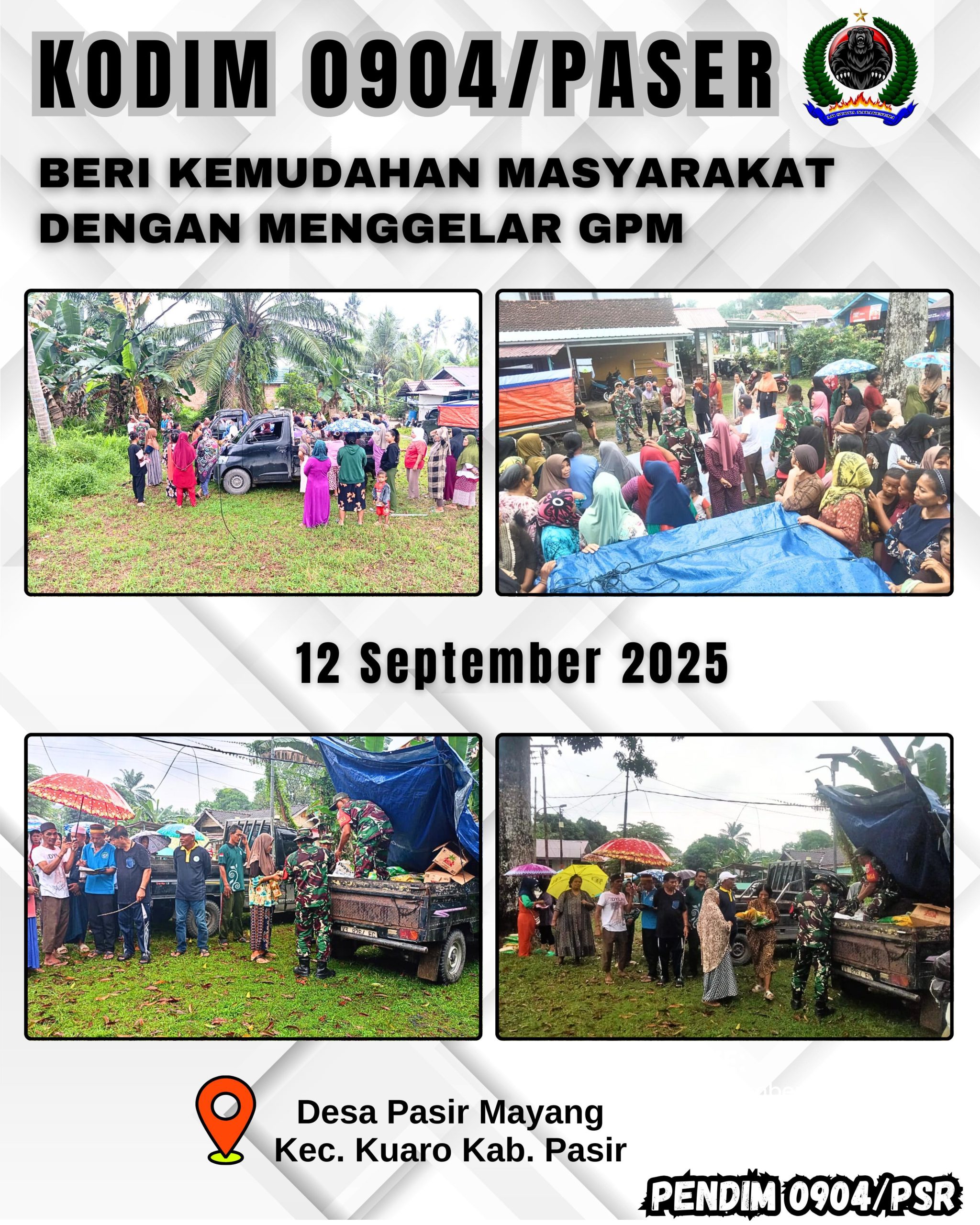 Kodim 0904/Psr, Korem 091/ASN, Kodam VI/Mlw – Kodim 0904/Paser bekerjasama dengan Bulog menyalurkan beras SPHP kepada masyarakat melalui program Gerakan Pangan Murah (GPM), yang digelar di wilayah Koramil 0904-05/Kuaro tepatnya di Desa Pasir Mayang, Kecamatan Kuaro, Kabupaten Paser, Jumat (12/9/2025).