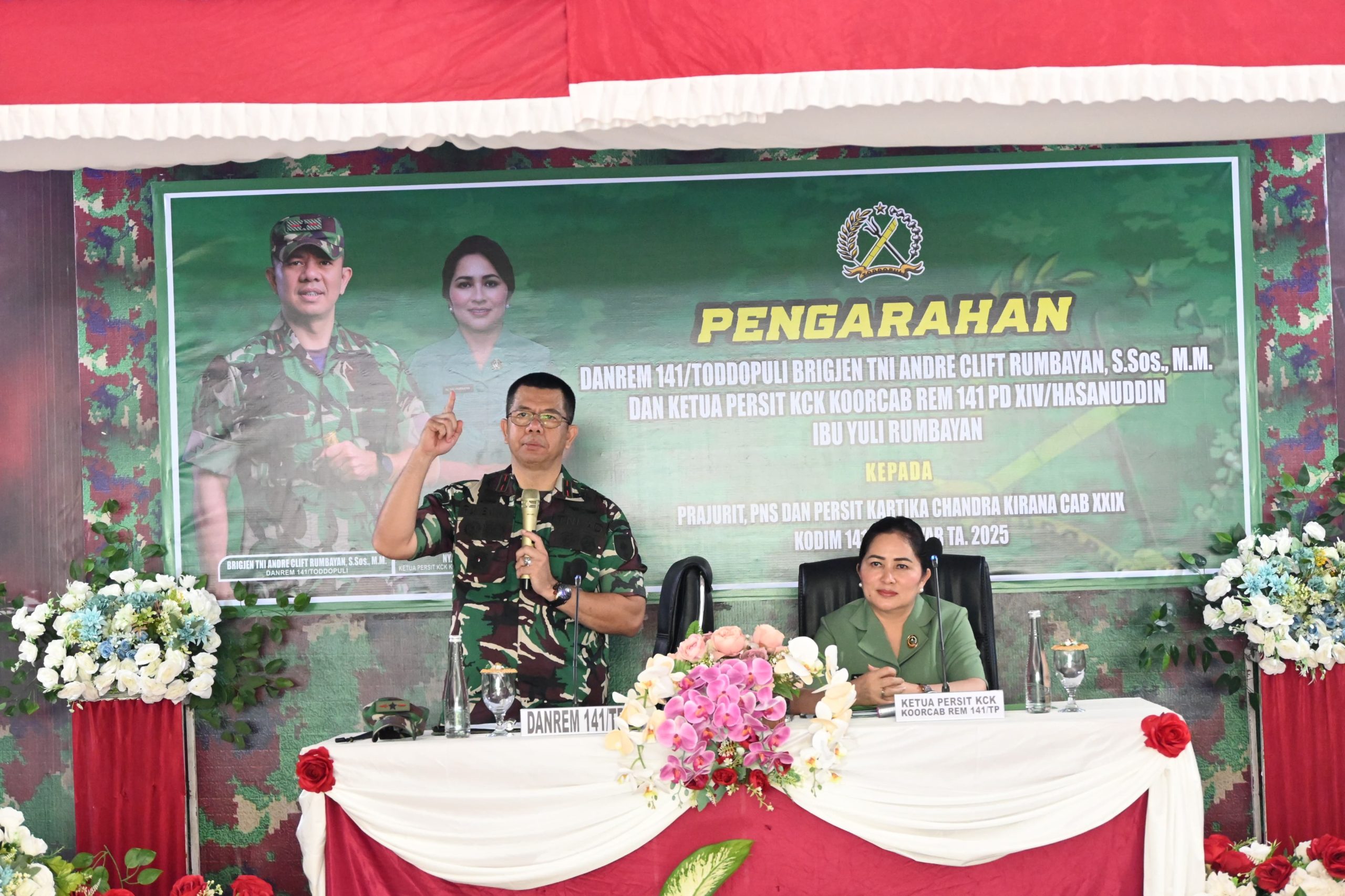 “Hindari Pinjaman dan Judi Online dan jangan sekali-kali menyentuh yang namanya narkoba, sayangi keluarga kalian hindari pelanggaran sekecil apapun , karena apapun pelanggaran yang prajurit kerjakan pasti akan berdampak kepada keluarga” tegas Danrem (Penrem141)