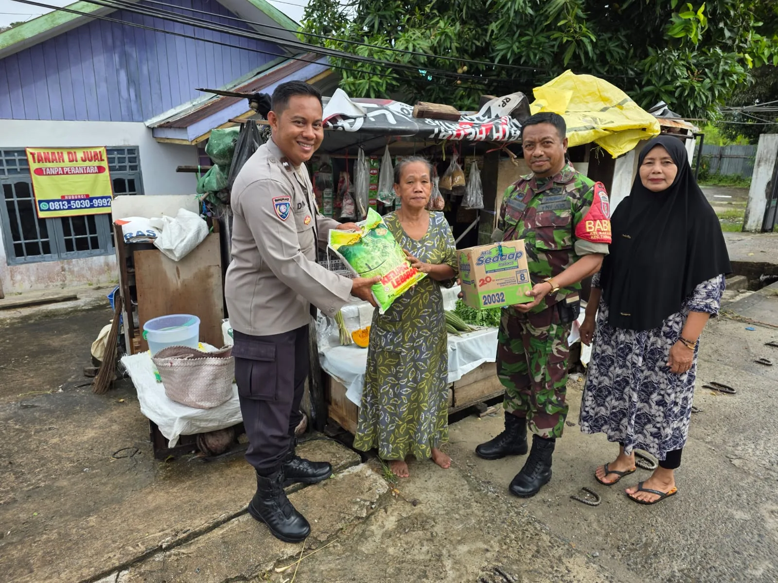 Tarakan – Untuk memastikan diterima kepada yang berhak menerima,Babinsa Koramil 0907/03 Tarbar Peltu Imran Aniru bersama Babinkamtibmas membantu pendistribusian bantuan sosial (Sembako) kepada Warga kurang mampu diwilayah Kelurahan Karang Anyar,Kec.Tarakan Barat ,Sabtu(15/11/2025).