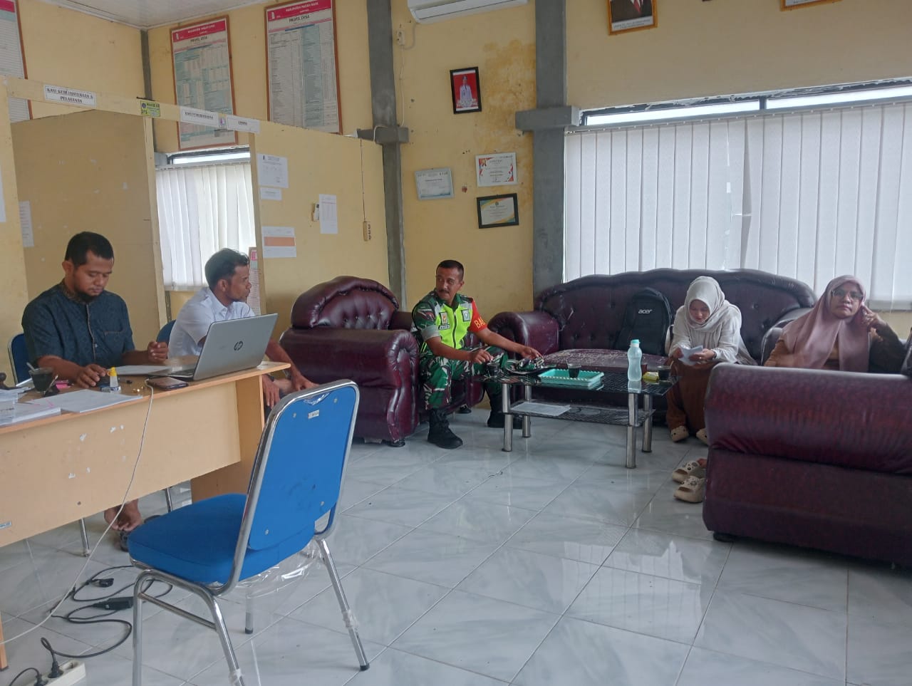 Nagan Raya – Bertempat di Kantor Desa Cot Dirui Babinsa Koramil 03/Senagan Timur Kodim 0116/Nagan Raya Sertu M. Hatta melaksanakan kegiatan rutin, yang merupakan salah satu bagian tugas pokoknya yaitu melaksanakan interaksi secara langsung dengan anggota Perangkat Desa Cot Dirui Kec.Senagan Timur Kab.Nagan Raya Jumat, 16-05-2025