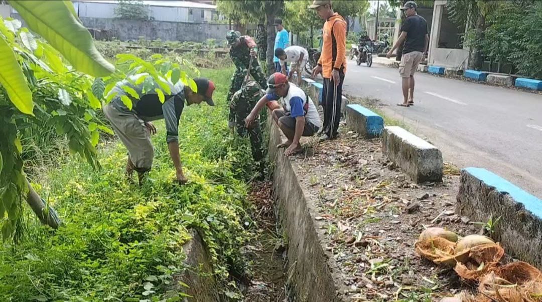 Cegah Banjir, Koramil-03 Kodim 1404/Pinrang Bersama Warga Kerja Bakti Bersihkan Saluran Air