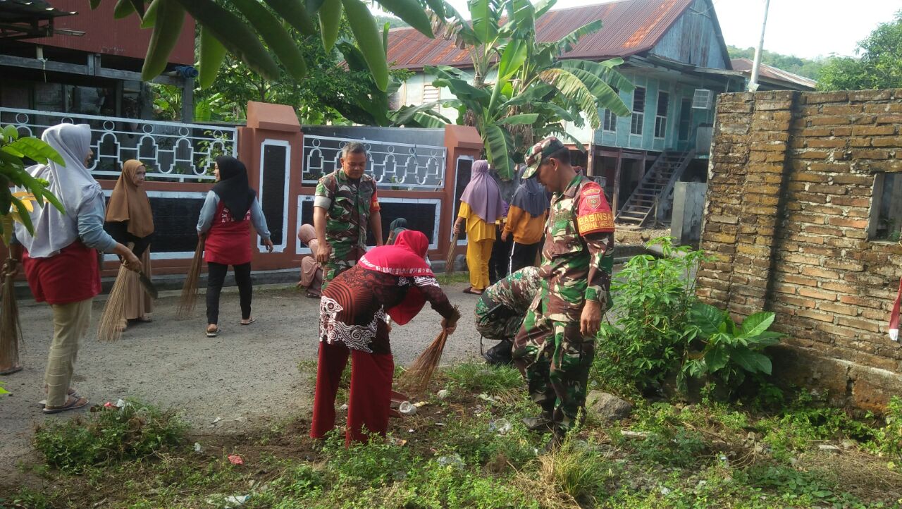 Terlihat di lokasi, warga bersemangat dalam melakukan pembersihan lingkungan, dengan penuh keakraban dengan aparat TNI saling bahu membahu menciptakan kebersihan lingkungan.