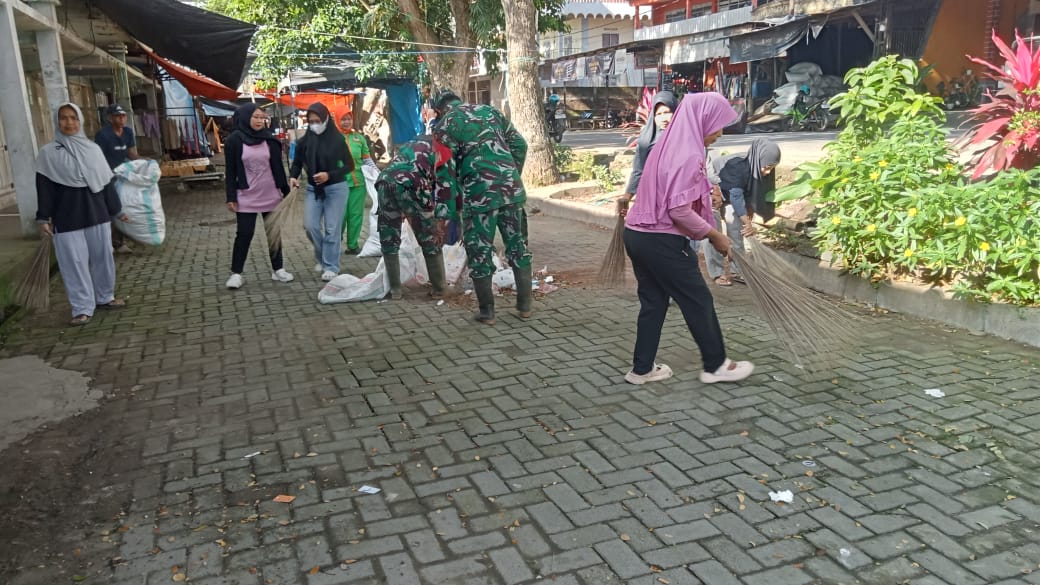 Enrekang – personil koramil 1419-02/Enrekang Melaksanakan karya bakti pembersihan pasar sentral jupandang dari tanah, rumput dan sampah lainnya sepanjang 400 meter di Lingk. Bungawalie Kel. Juppandang Kec. Enrekang Kab. Enrekang. Rabu,(16/06/2025).
