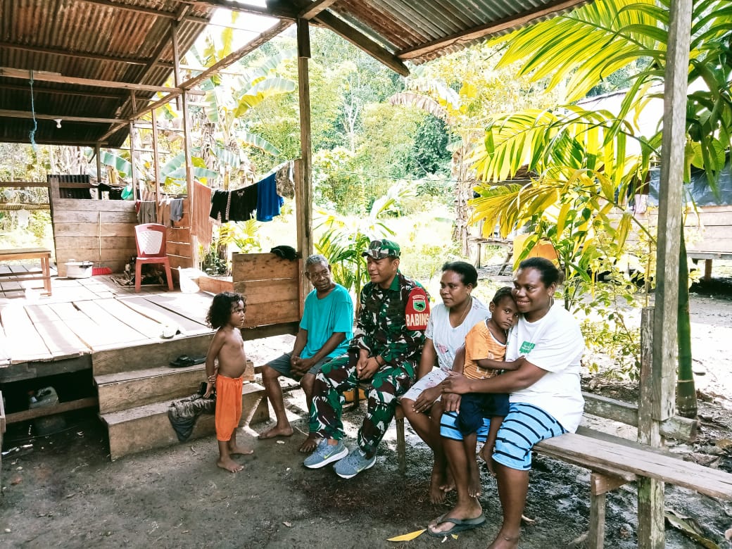 Salah satu warga yang turut hadir dalam kegiatan tersebut adalah Bapak Isak Dawa (60), seorang petani yang telah lama menetap di kampung tersebut. Dalam suasana penuh keakraban, Babinsa dan warga saling bertukar informasi serta berdiskusi tentang berbagai hal yang berkaitan dengan kehidupan sehari-hari di kampung.