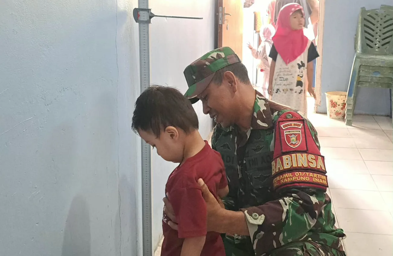 Tarakan – Guna menjaga Balita di wilayah binaannya tetap sehat, Babinsa Koramil 0907/01 Tartim Serma Hadi Suprianto aktif mendampingi Posyandu Balita yang dilaksanakan petugas kesehatan dari Puskesmas di wilayah Kel.Kampung 6 ,Kec.Tarakan Timur,Jumat(10/04/2026).