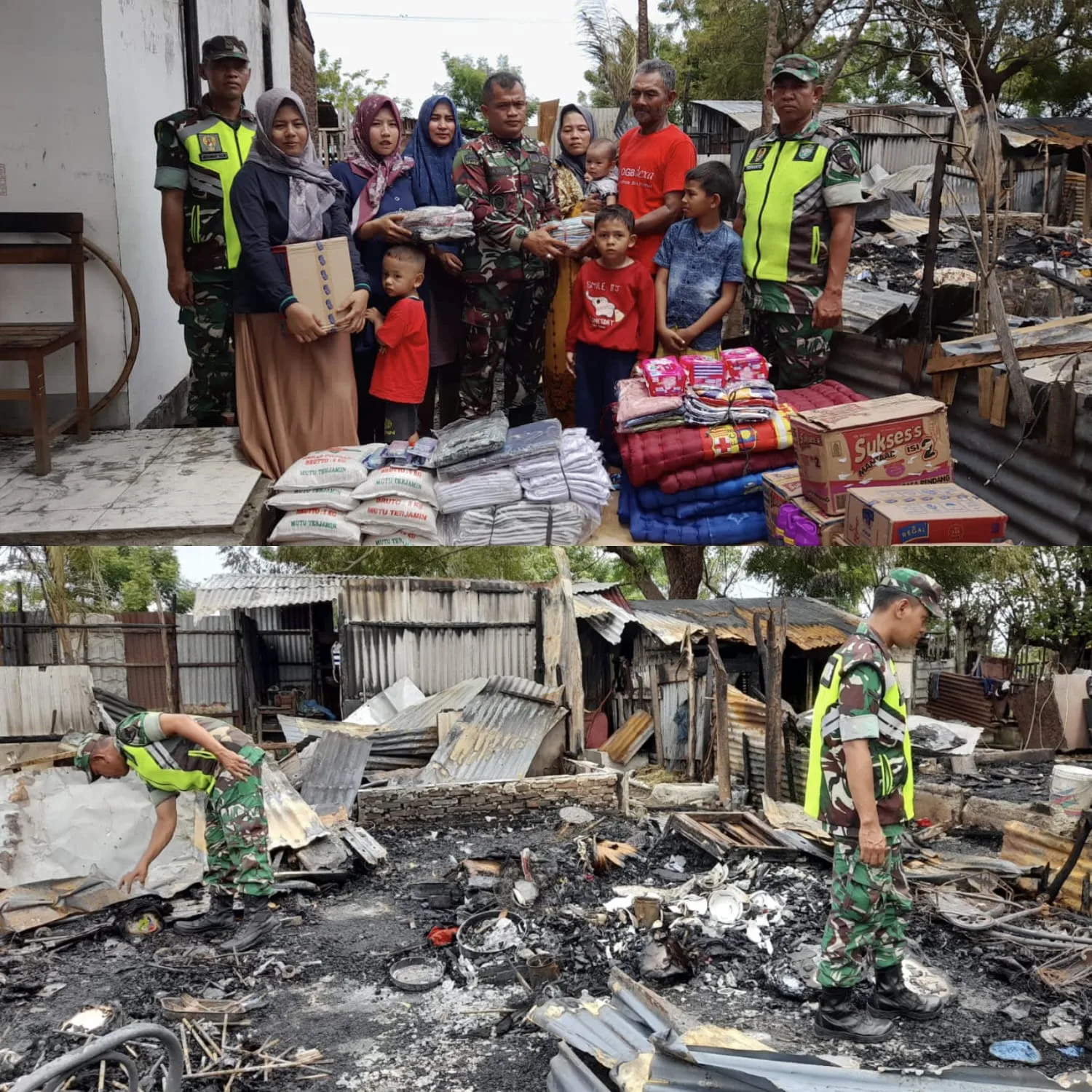 “Kami atas nama keluarga besar Kodim 0102/Pidie turut merasakan duka atas musibah ini. Semoga keluarga diberikan ketabahan dan kekuatan. Bantuan ini mungkin tidak sebanding dengan kerugian yang dialami, namun kami berharap dapat membantu meringankan beban dan menjadi penguat semangat untuk bangkit kembali,” ujar Kapten Dian.