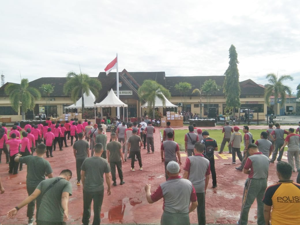 Pinrang_ Pagi yang sejuk menyelimuti ratusan peserta dari berbagai elemen berkumpul dalam nuansa kebersamaan yang hangat melaksanakan olahraga bersama dalam rangka memperingati Hari Ulang Tahun Bhayangkara ke-79, bertempat di lapangan apel Polres Pinrang, Sabtu (21/06/2025).
