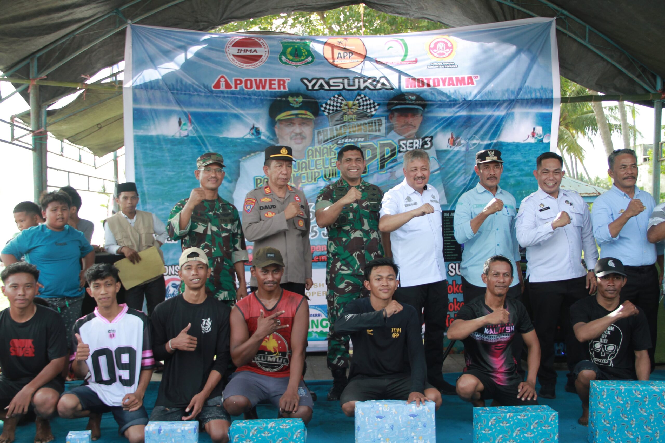 Pinrang_ Dandim 1404/Pinrang Letkol Inf Abdullah Mahua, S.H.I., M.M., mendampingi Bupati Pinrang H. Andi Irwan Hamid, S. Sos., membuka Katinting Race APP Cup VII Seri 3 BCC Championship 2025 di Pantai Harapan pajalele Desa Binanga Karaeng Kecamatan Lembang Kabupaten Pinrang, Kamis (03/07/2025).