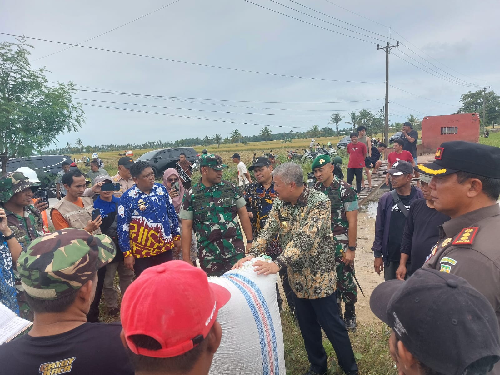 Dandim 1404/Pinrang Dampingi Bupati Pinrang Pantau Langsung Proses Penimbangan gabah petani
